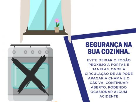 Evite deixar o fogão próximo a portas e janelas, onde a circulação de ar pode apagar a chama e o gás vai continuar aberto, podendo ocasionar algum acidente!