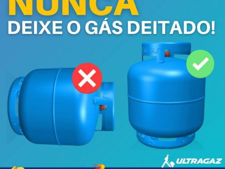 O ideal é deixar ao lado. Outra recomendação é não deitar o botijão para aproveitar o fim do gás. Força o regulador de pressão, como a mangueira, e o gás pode escapar e provocar um acidente, além dos resíduos do botijão que podem entupir o fogão! O gás mais rápido da cidade‼️